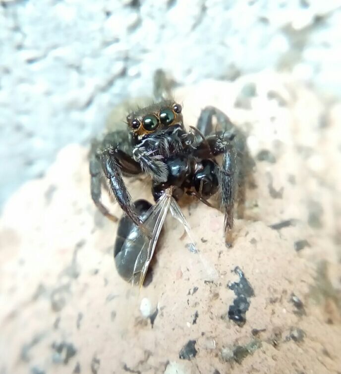 それならハエトリグモも負けていない。野性的……というか野生そのものだ。共食いもするし。