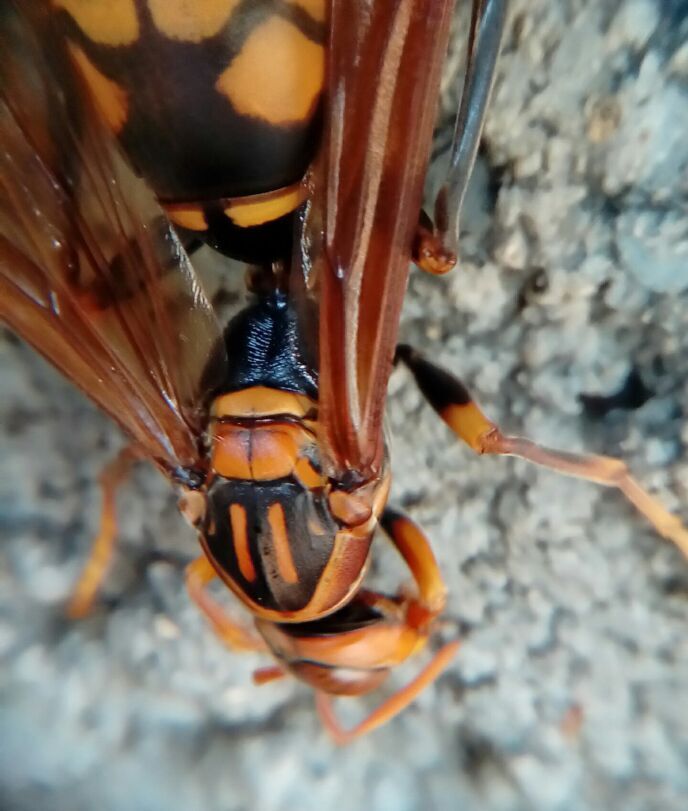 ↓この子はセグロアシナガバチ。つぶらな瞳と美しい模様を持つ。