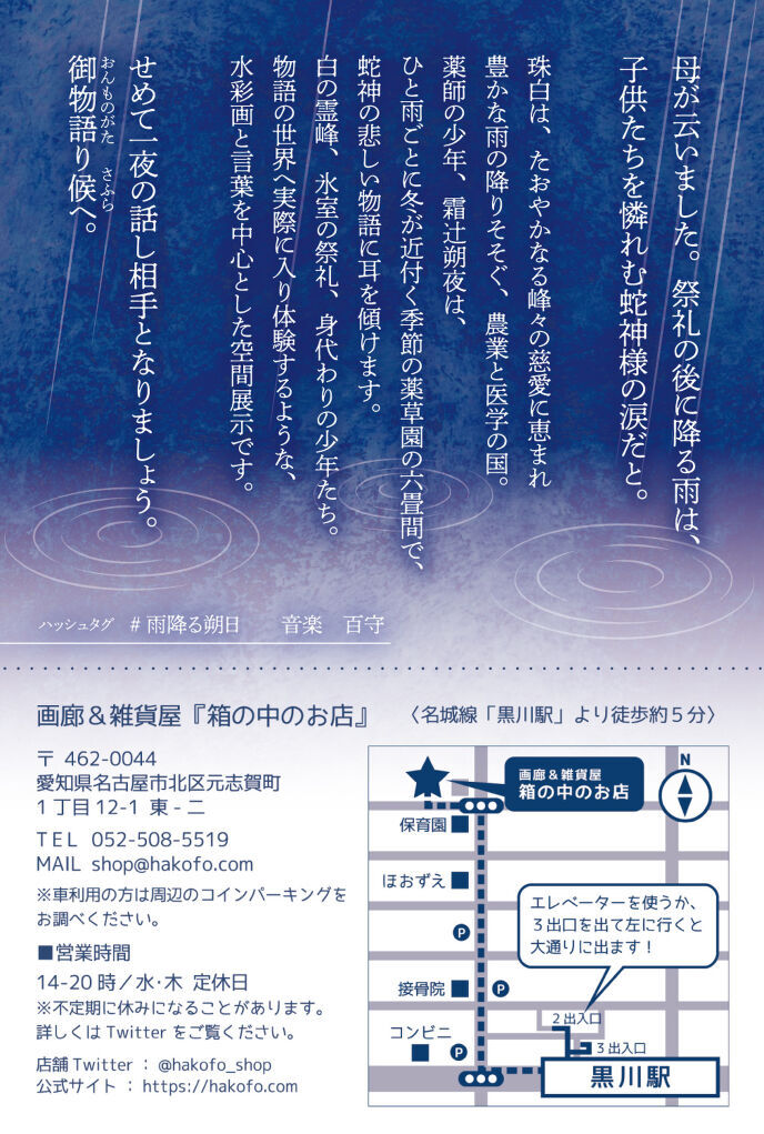 「雨降る朔日」の物語の世界を体験していただける展示です。