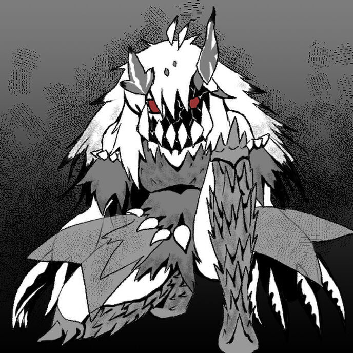 とっさに地面に身を投げ出す。バタつきながら起き上がると、俺がさっきまでいた場所に、不気味な怪物が佇んでいた。老人のような真っ白な髪。額からは毒々しい紫色の角が突き出している。幽鬼のように白い肌は、ところどころ紫の鱗に覆われていた。そしてこちらをギョロリと睨む二つの目だけは、血のような赤色だ。