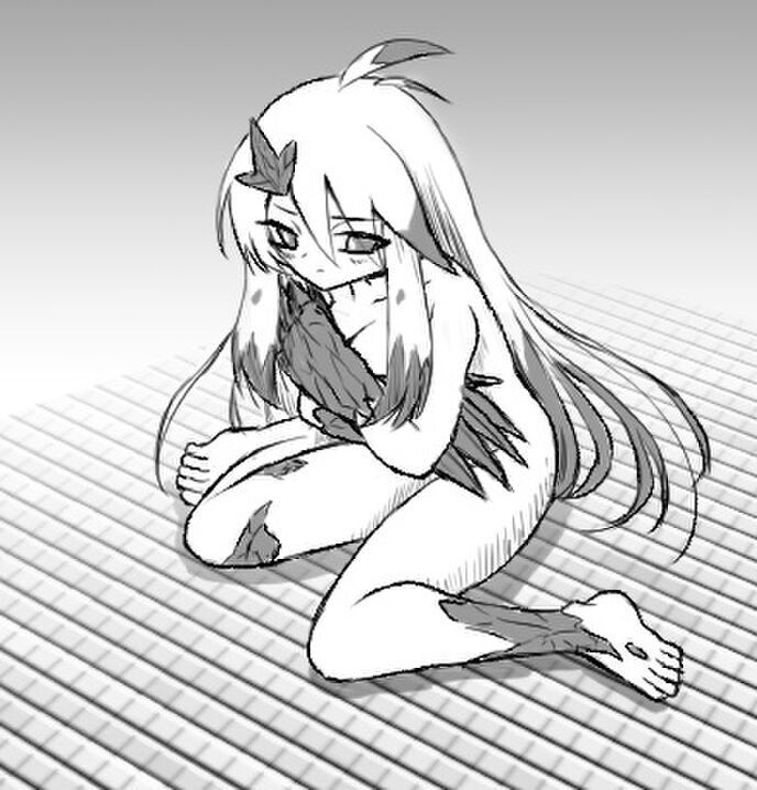 俺は動転した心臓を落ち着かせながら立ち上がった。ふぅー。一方フランは、鉤爪で器用に服を脱ぎ去っていた。彼女の服は、鉤爪の毒に耐性があるらしい。そして最後の一枚である下着を足元に落とすと、その場にぺたりと座り込んでしまった。俺がおすわりさせたのではなく、フラン自身が、それが最も肌を隠せると判断したらしい。