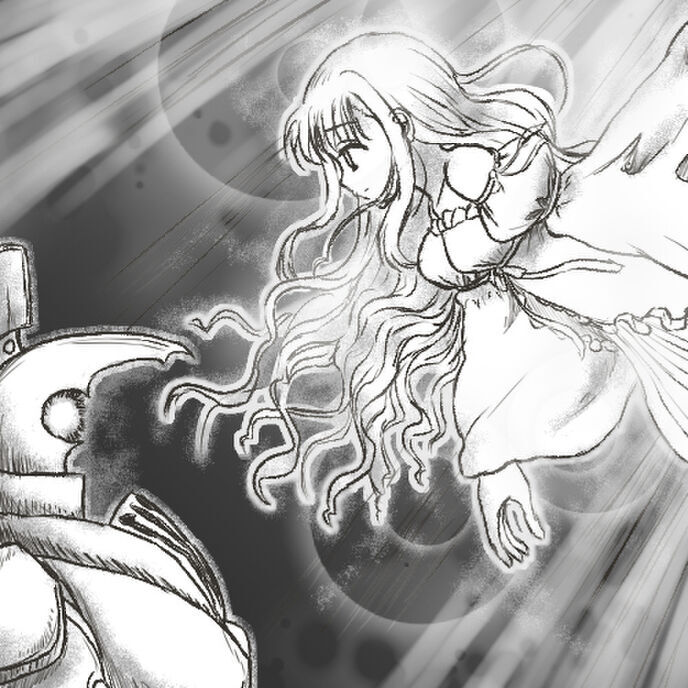 メアリーの姿が、すうっと昇っていく。天井の穴を抜けて、空へ……その手を掴んでいたエラゼムは、そのまま動かなくなった。