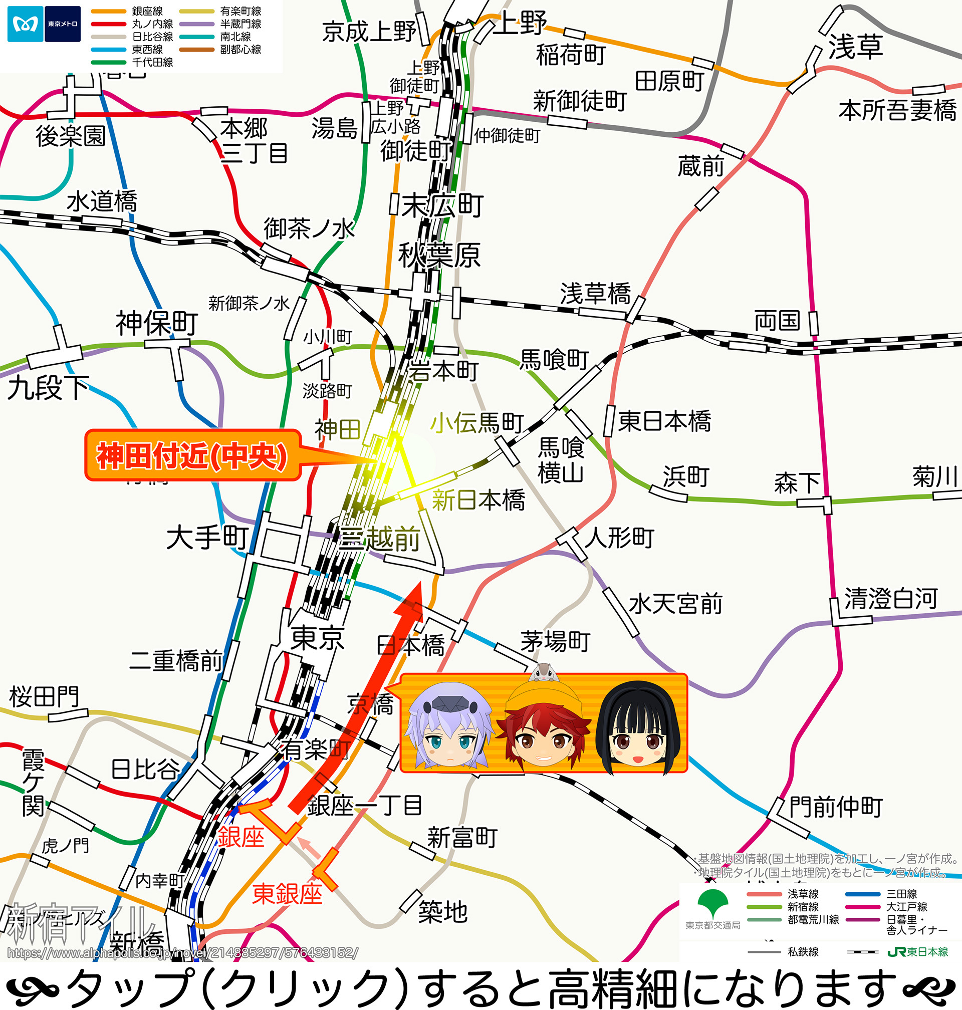再びの銀座線で北上すれば、3つ先の三越前駅とその次の神田駅との間くらい。