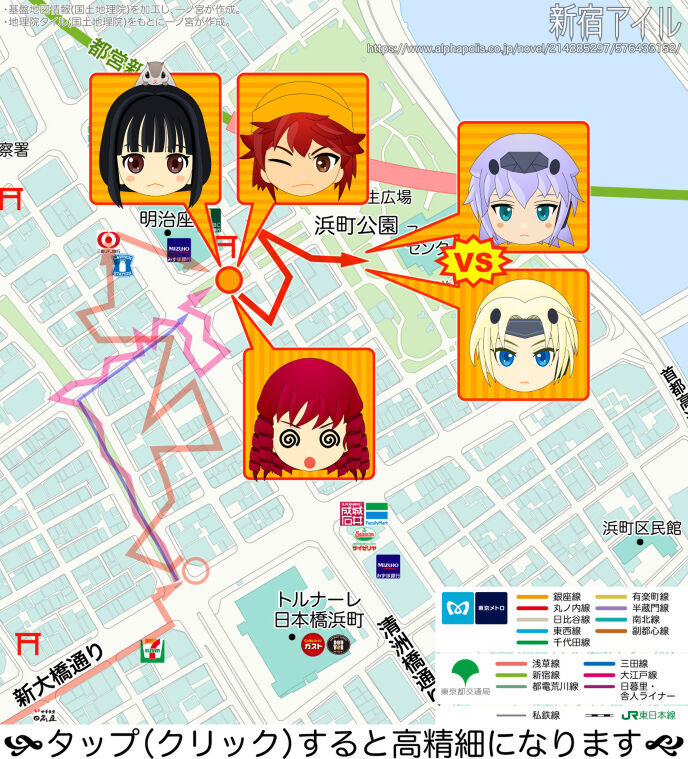 低いビルを跳び移り、リグナとデッサは交戦しながら、浜町公園の方向へ移動していく。
