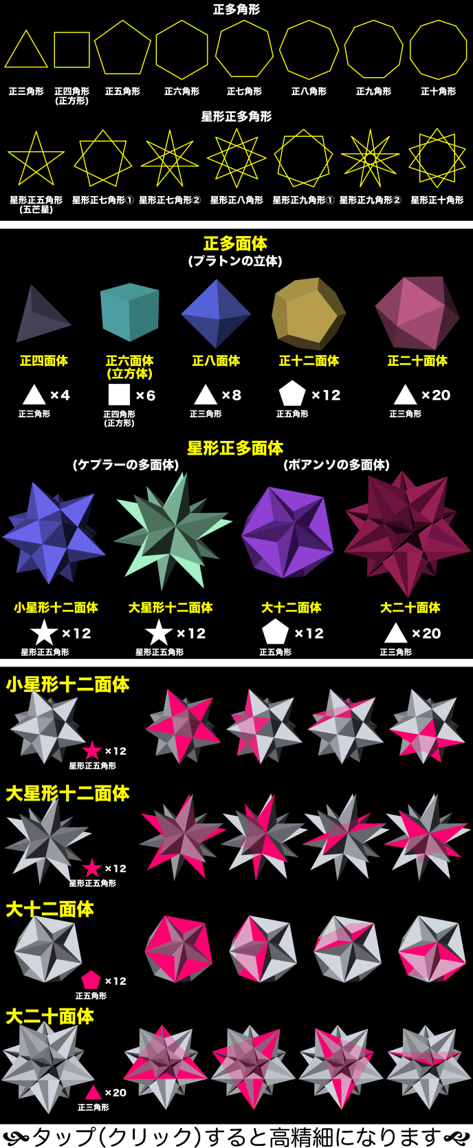 前の2つをケプラーの多面体、後の2つをポアンソの多面体ともいう。