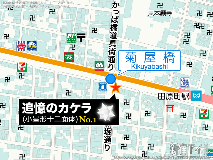そもそも〈追憶のカケラ〉があった場所と交差点が一致しているのは、1つ目の菊屋橋交差点と5つ目の広尾橋交差点だけ。