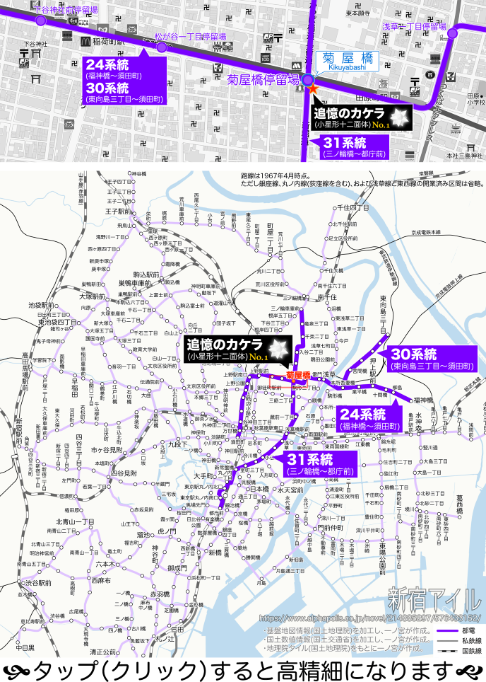 31系統は都庁前から新常盤橋、浅草橋を経由し、三ノ輪橋まで。