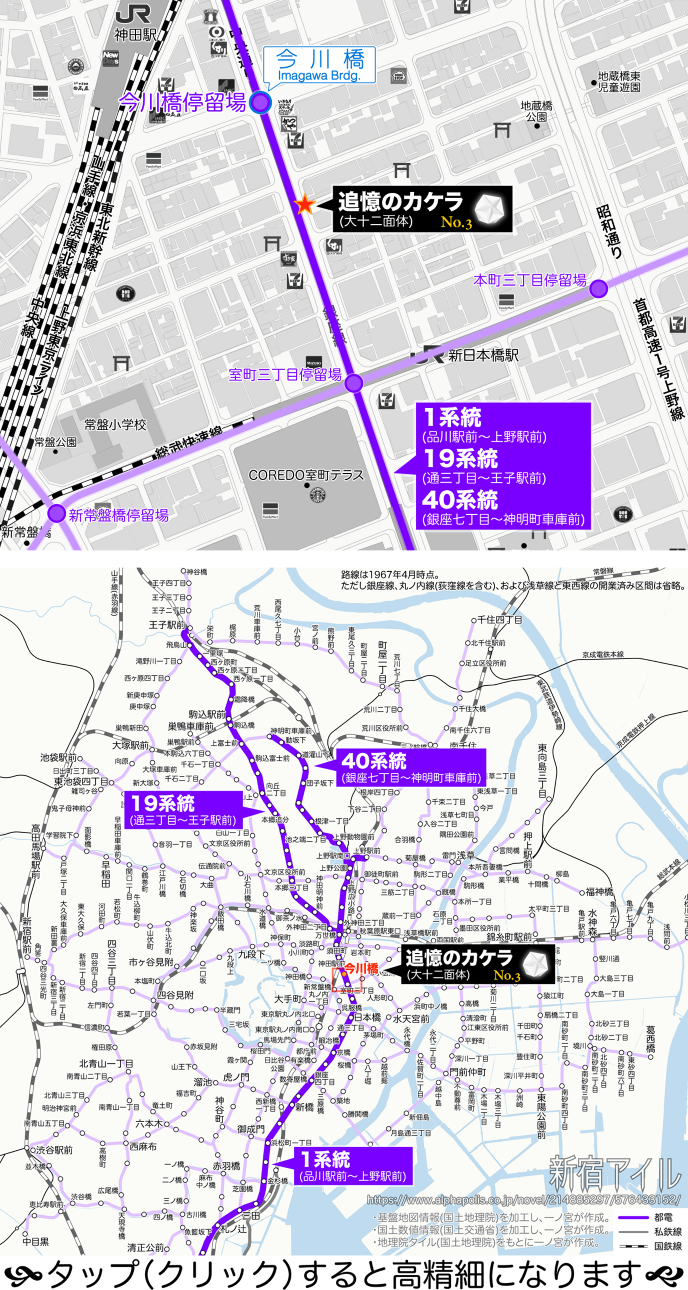 日本橋と万世橋を経由する1系統、19系統、40系統が南北に通っていた。