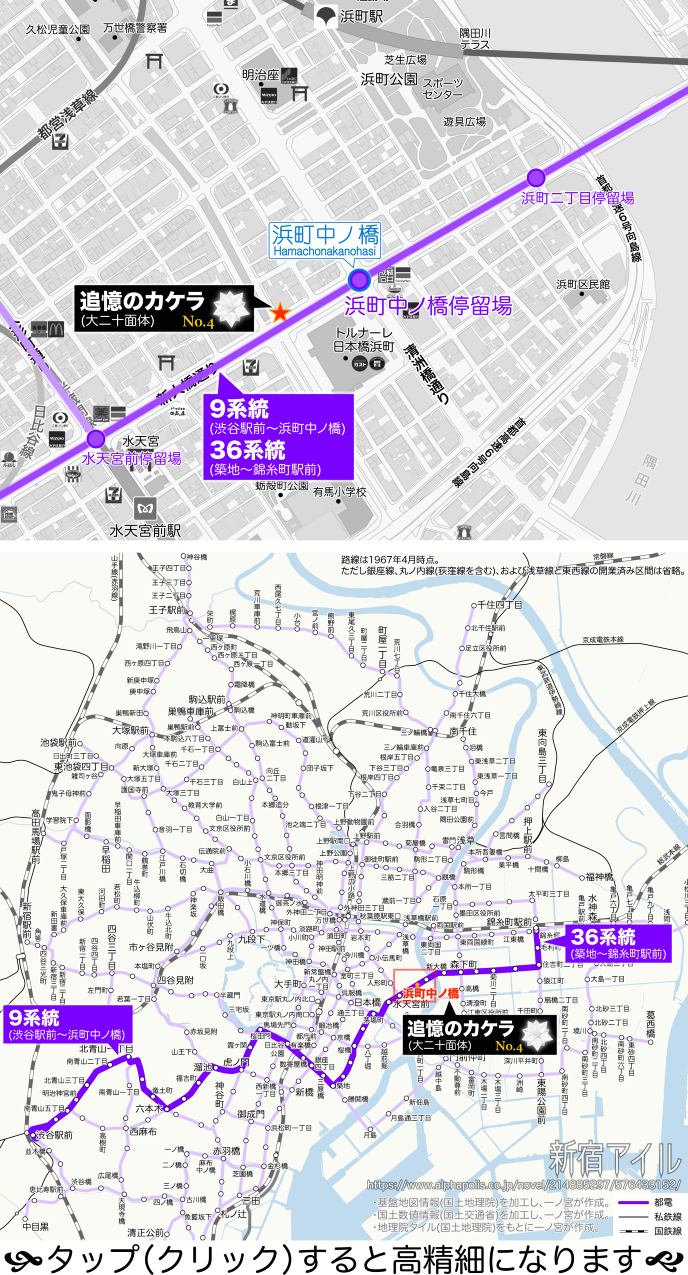 9系統は、青山を通り抜け、六本木を経由して8系統に合流、築地からはさらに桜橋、水天宮前を経由して浜町中ノ橋まで。