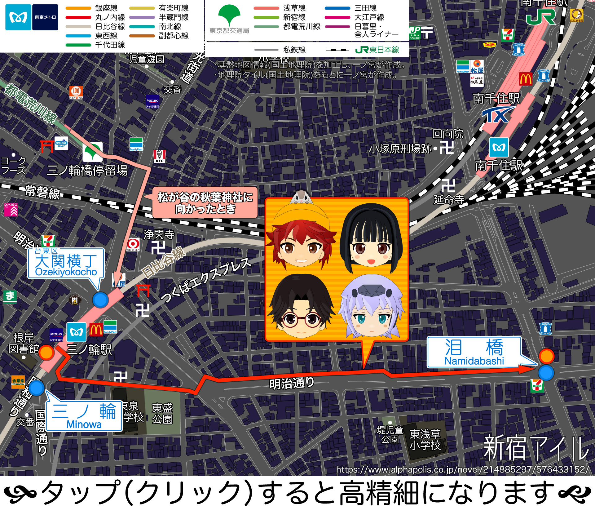 しおりを挟むハルたちはパスモをタッチし、三ノ輪交差点方面と表示された改札口を抜けた。