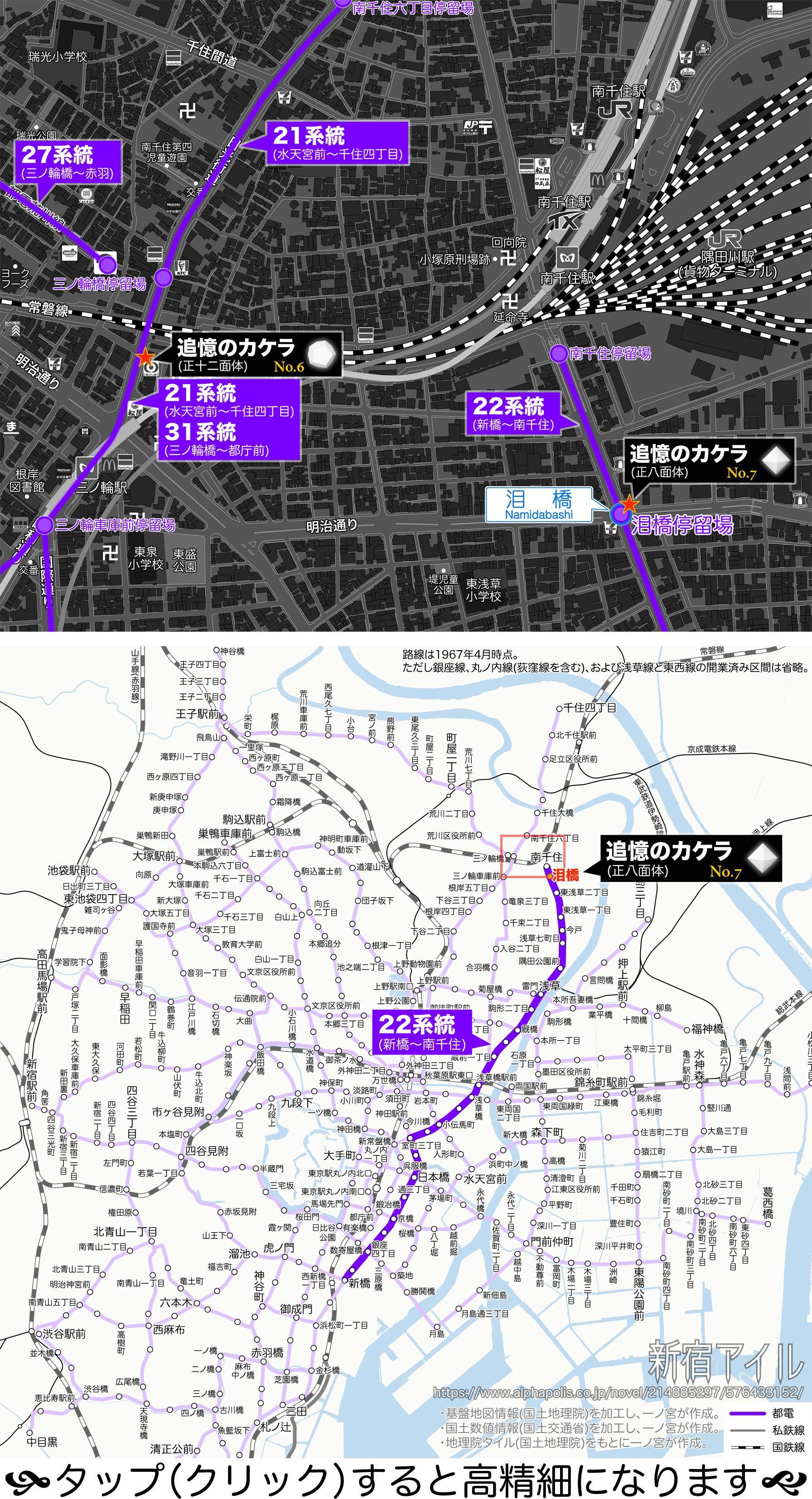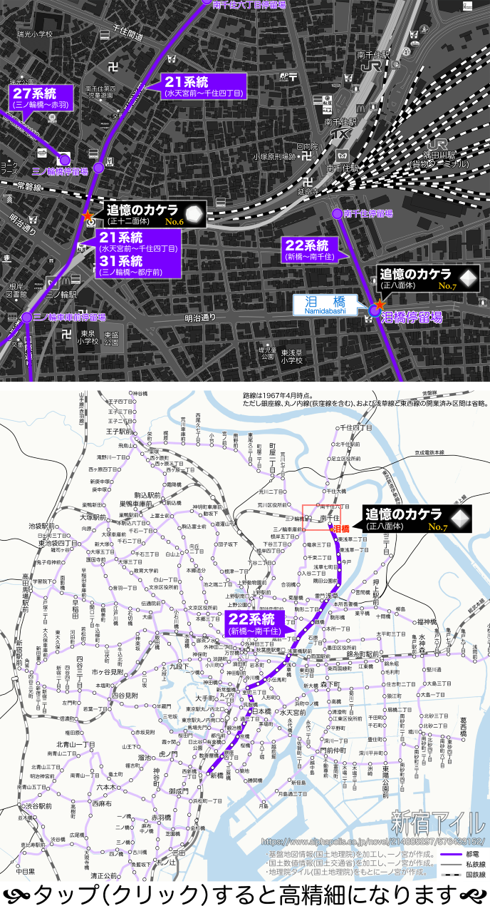そこからほぼ真東に、直線距離で800メートルほど、地図上では右の端に位置するのが泪橋交差点だ。