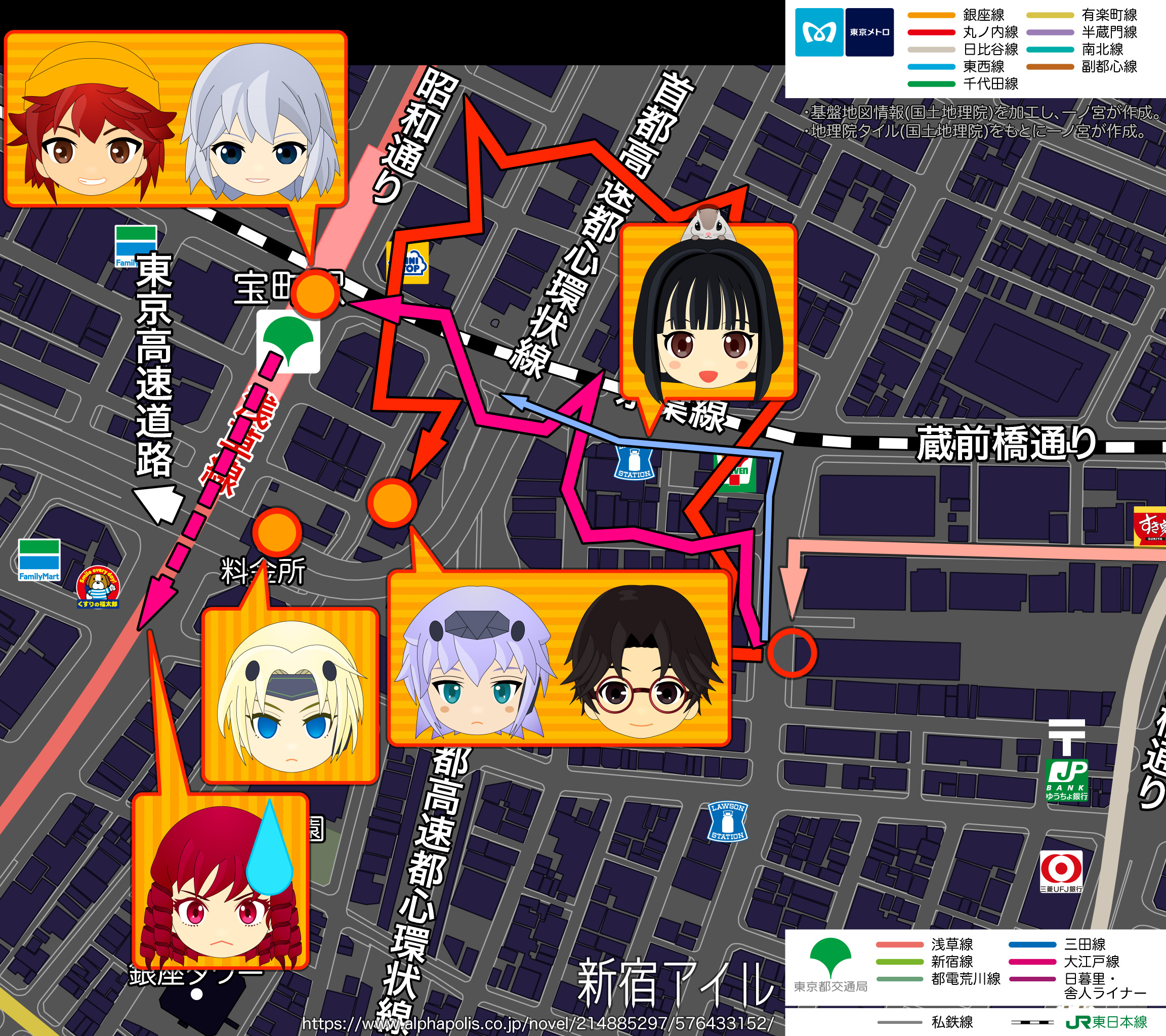 そのまま、ハルたちは宝町駅A3出口の狭い階段を駆け降りた。