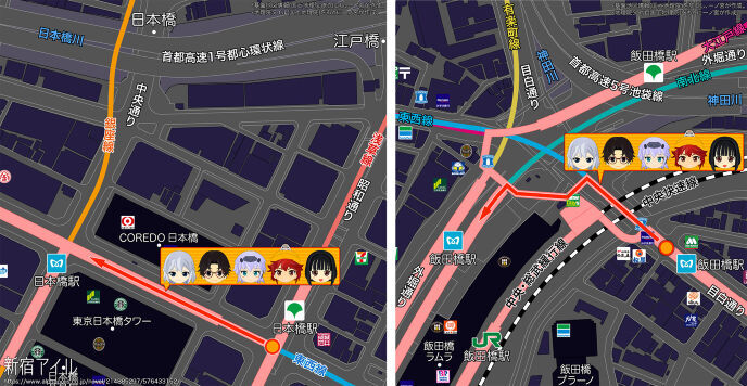 JR線と外濠が間にあるから、東西線と南北線は少し離れている。