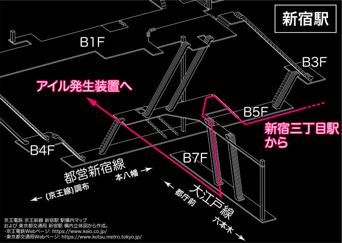 都庁前駅の方向を見れば、トンネルの向こうに、赤紫色の光を背負って誰かが待ちかまえていた。