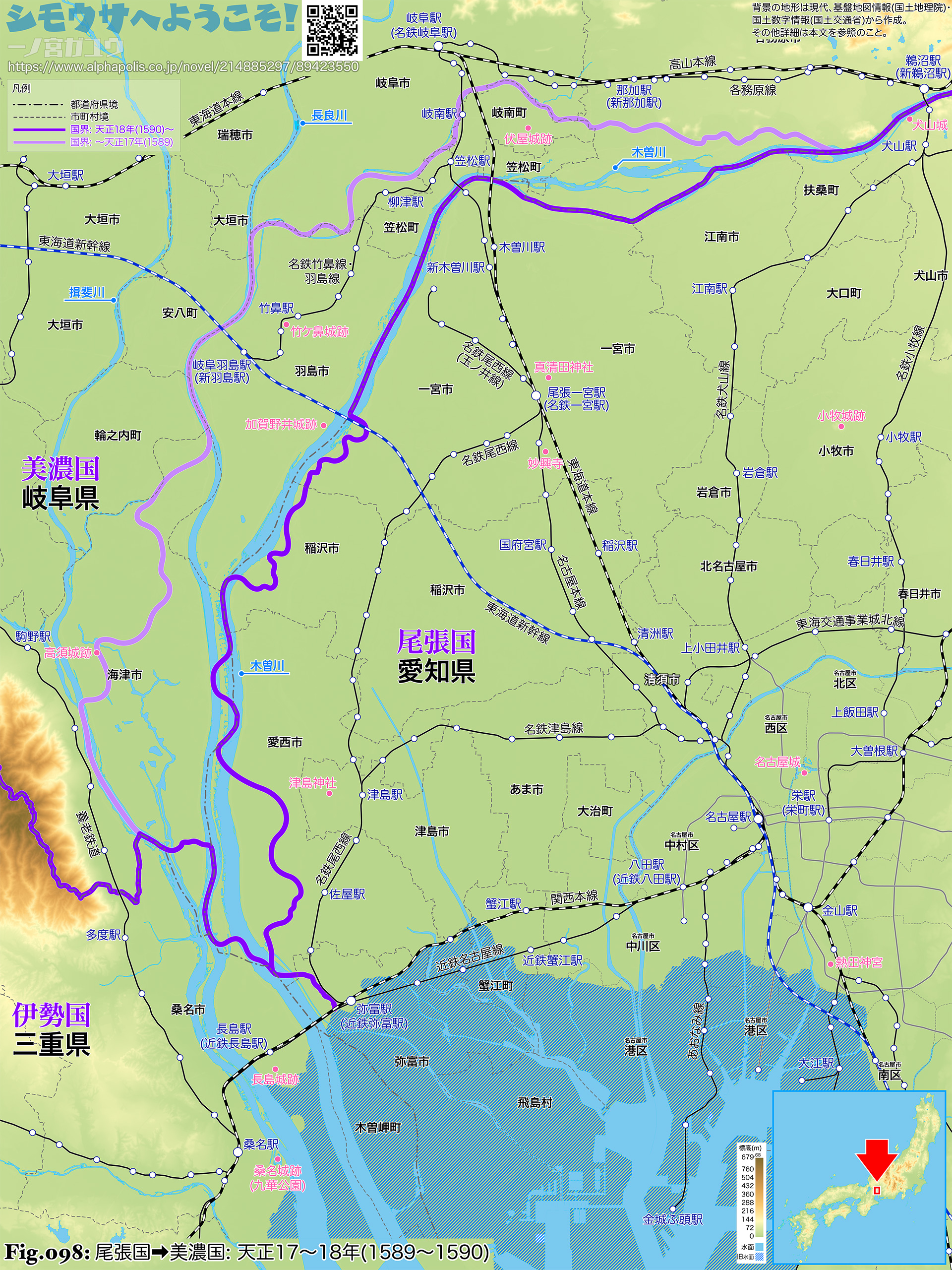 ○尾張国➡美濃国: 天正17~18年(1589~1590)