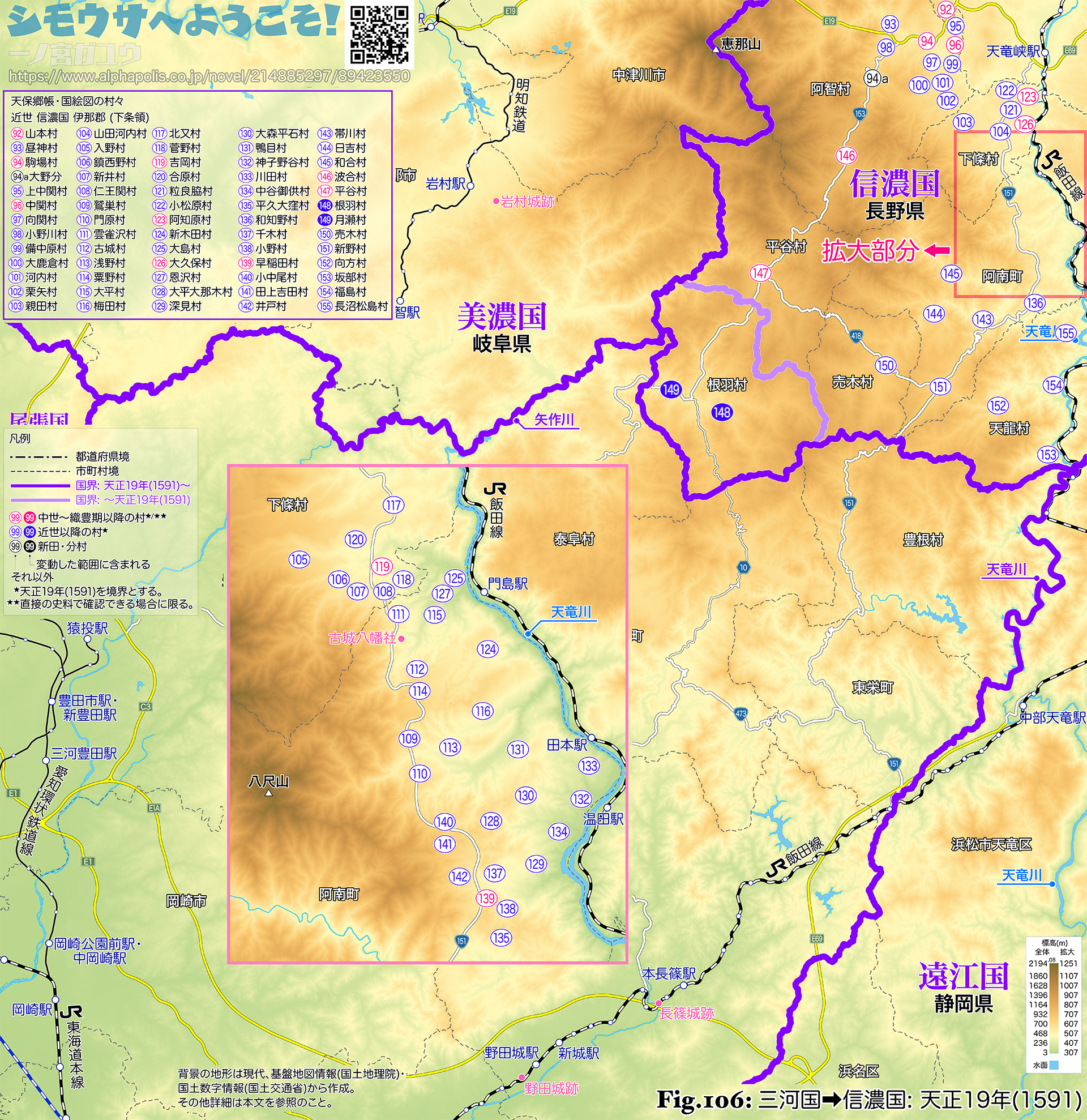 ❉36: 明治8年(1875) 根羽村に編入、したがって対応する近代の大字は存在しない。