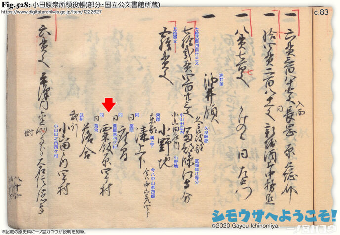 ❉2: [中世~織豊期] 永禄2年(1559): 「小山田庄」の「広袴」(小田原衆所領役帳)、ほか。