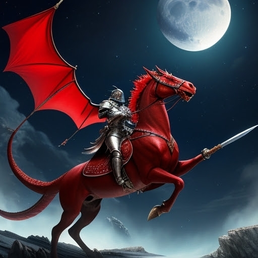 真っ赤な馬に騎乗する騎士が生成されている。しかも中途半端にペガサスよろしくドラゴンの翼みたいなものがついてる。
