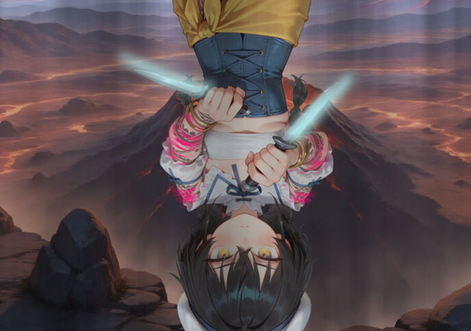 さっきまで縹の両腕で浮かんでいた刺青が鮮やかに小刀に転写され、バチバチと打ちたての鋼のように火花を上げる。