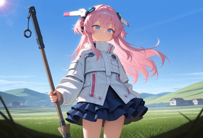 みちるのホウキを見て、彼女が話しかける。