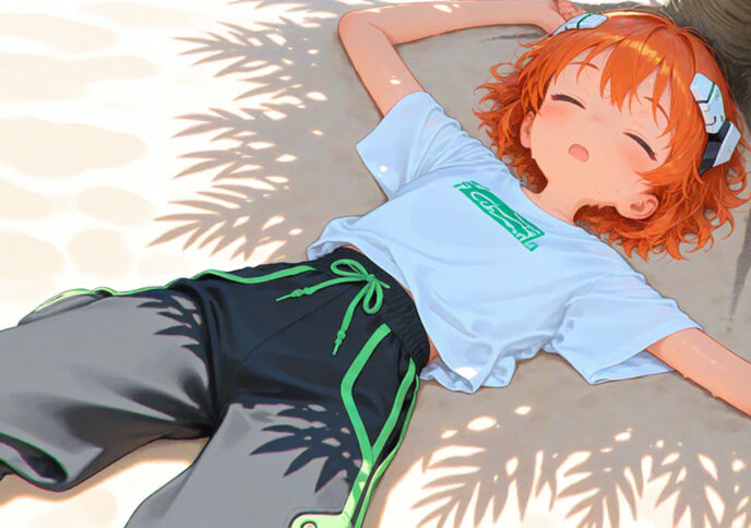 みちるは叫ぶと、ジャケットを脱いでベゾムと一緒に砂浜に放り出し、その場に寝転がる。