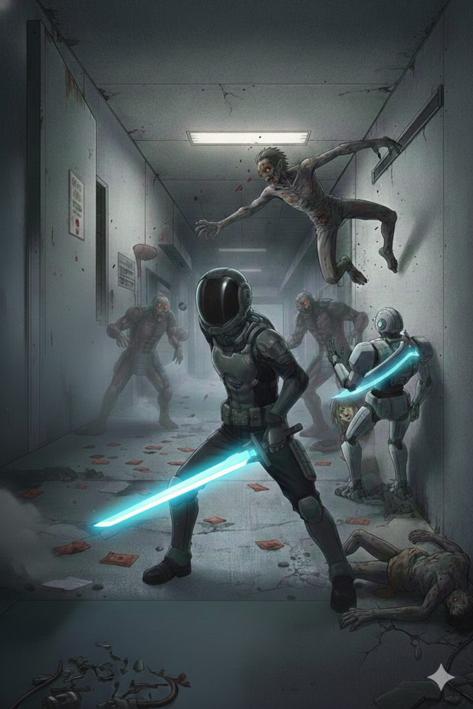 青白い軌跡が闇を裂き、ゾンビの頭部を正確に断ち割った。