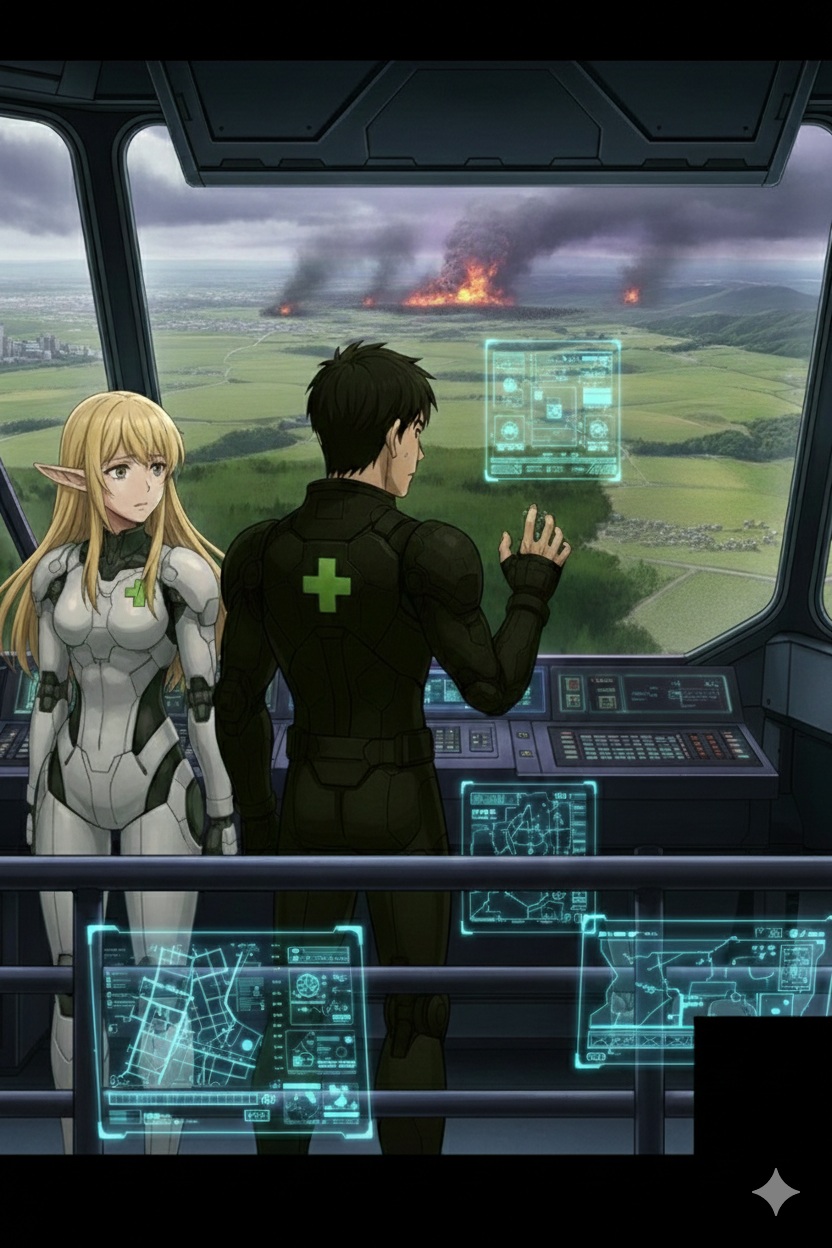 そこまで口にして、折原は自分の指先が微かに震えていることに気づいた。 かつて折原が戦国シミュレーションゲームにはまっていた時期、画面の向こう側で戦略を練っていた頃、兵の損失はただの数値に過ぎなかった。だが、今は違う。鼻をつく死臭と硝煙、そして、展望デッキの冷たい風(……俺は今、リセットのきかない『命の集積』を転がしているんだ) その実戦の重圧が、冷たい電流のように背筋を駆け抜けた。