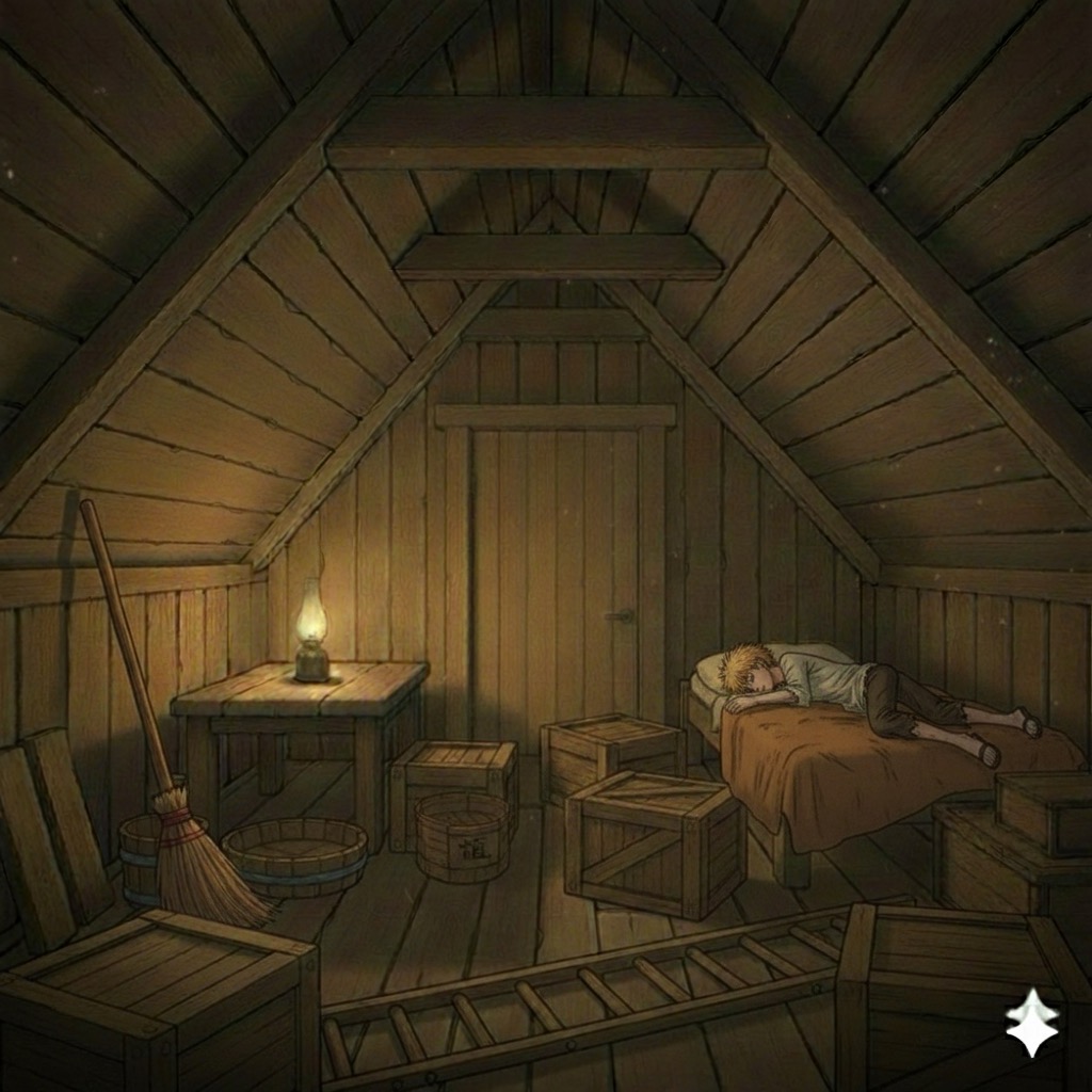父が酒瓶の栓を抜く音を聞きながら、レオは逃げるように自室としている屋根裏の狭い物置部屋へと潜り込んだ。