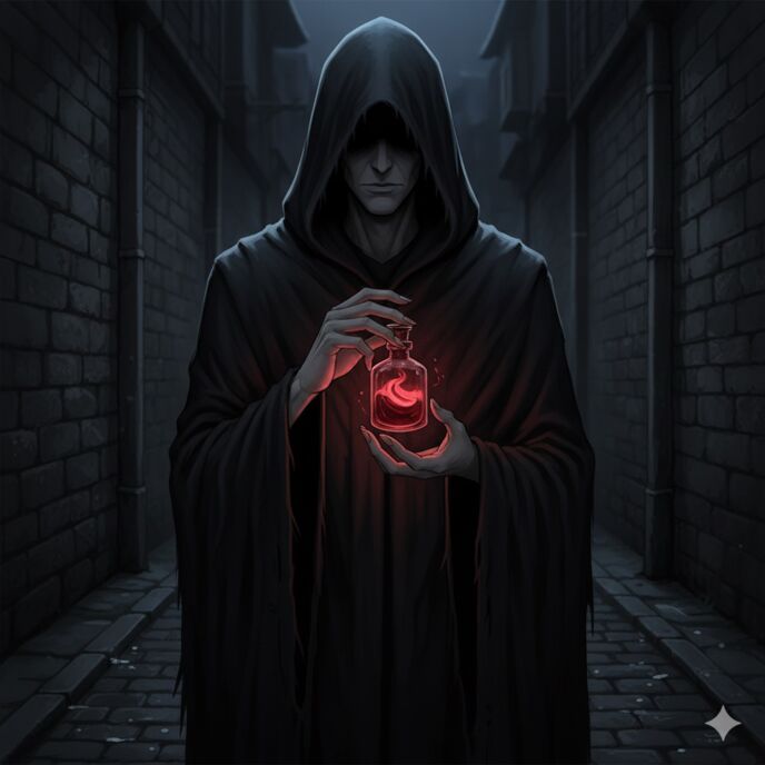 残されたレオの手には、透き通ったガラスの小瓶が握らされていた。中には粘り気のある液体が揺らめいている。月明かりもないはずなのに、小瓶そのものが微かな燐光を放っているように見えた。
