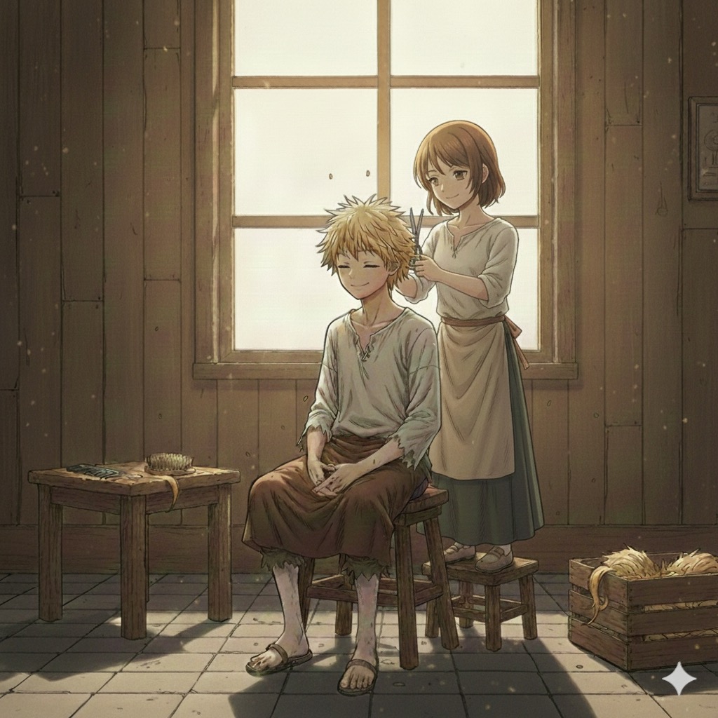 その商人の娘が、翌日、少し緊張した顔でレオの髪を短く切ってくれた。