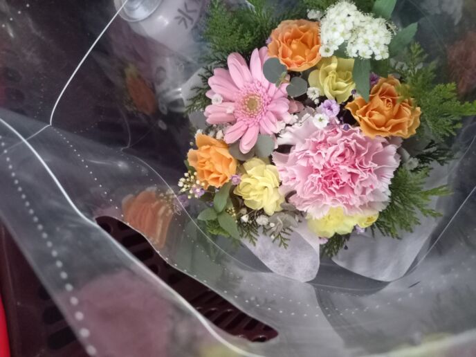 降りてきたタ妹βの手には綺麗なお花。