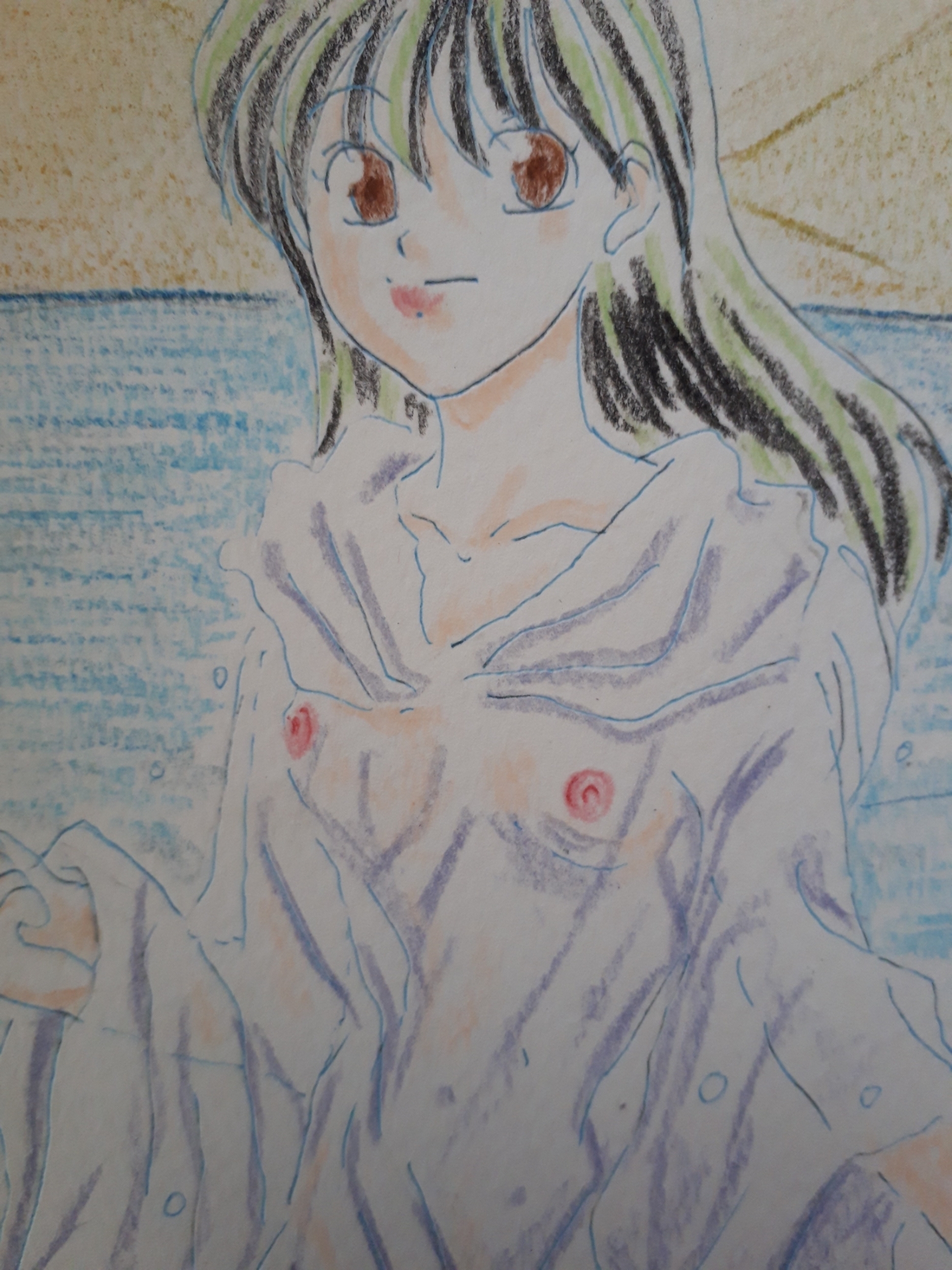 俺は思わず、同じく水に浸かるエメラの目を背後から俺の手で覆い、