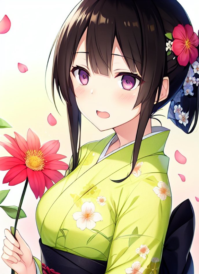 着ていた和服は液体のようにとけ、花柄の浴衣へと変化。