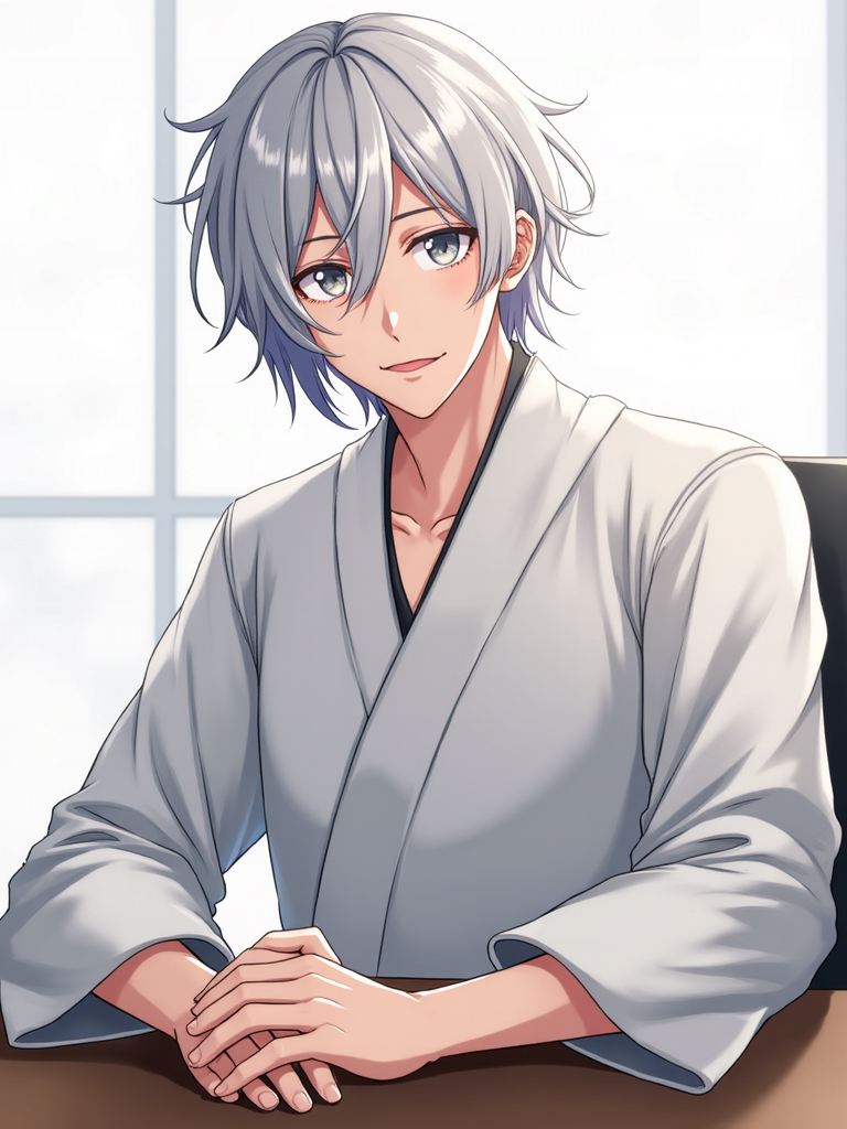 真面目だが強気で、どこか挑発的な笑みを浮かべる青年。