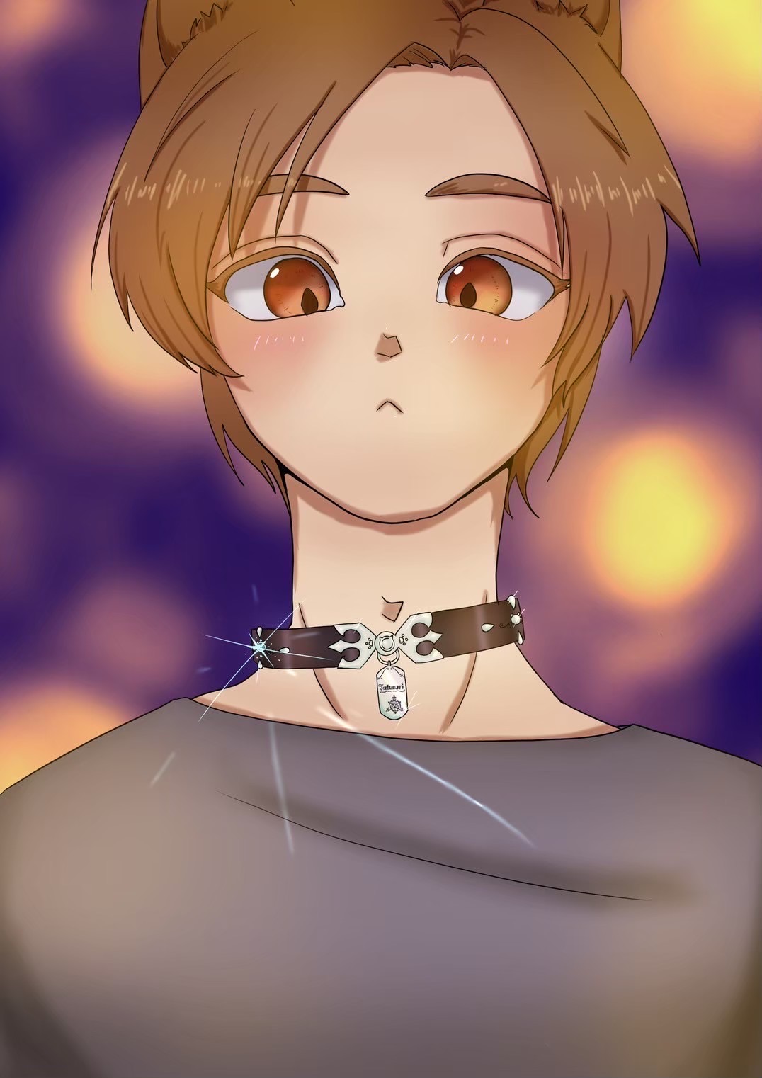 暗闇の中、指先で首輪を止める指に雫が落ちた。