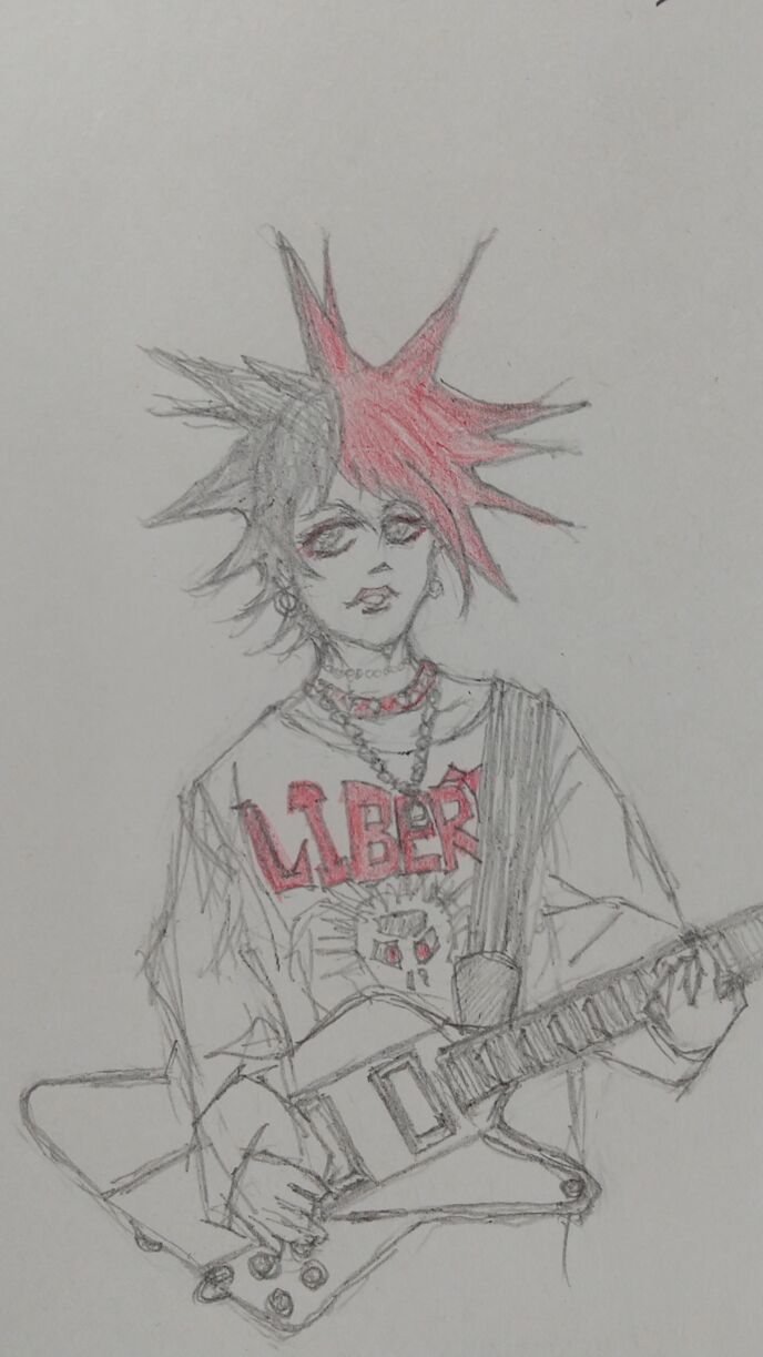 久しぶりに絵描いたらグダグダ。子供の落書きレベルですな。ギターの絵ってムズい。テキトー。後全然似てないね。