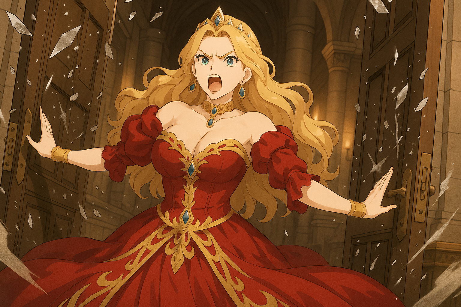 そんな混乱の坩堝へと、魔術結界の欠片を押し除け、風を伴いながら、絢爛たるドレスの裾を翻し、堂々と歩を進めるひとりの女性。