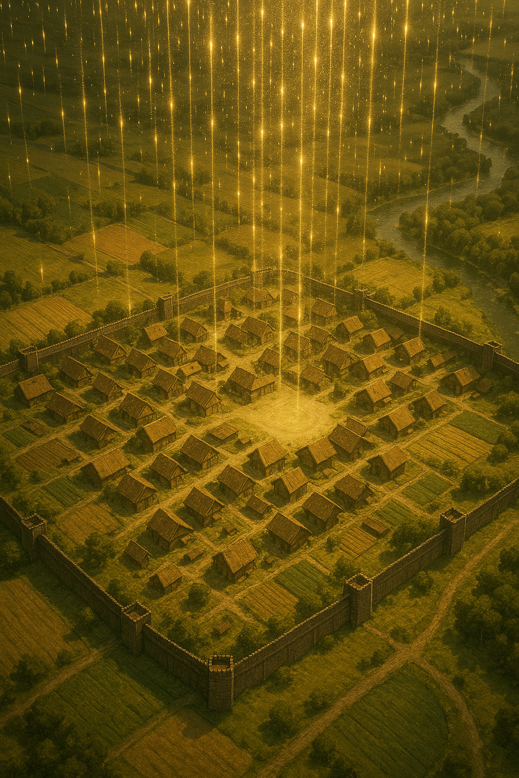 村に所属する者、建築物、土地、あらゆる"モノ"達へ――村の隅々が黄金色の輝きに染まっていく。