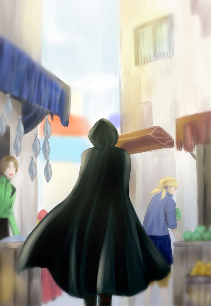 深緑のフード付きマント、脱げかけていたそのフードを深くまでかぶり直していた人物に確認もせずに声をかけた。そいつがこちらを振り向いた時ちらりと見えた緑の髪、そしてフードの下から覗く黒い瞳が信じられないものでも見たかのような形に変わるのを見て俺は確信した。大人になったとはいえ微かに面影が残っている。