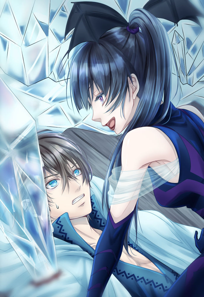 ノワールは笑って肩の傷に触れながら楽しそうに話し始めた。けど……俺にとっては聞くなんてそれどころじゃない。氷柱が刺さったままの右肩とマヒしつつある感覚で頭がおかしくなりそうだ。回復しようと伸ばした左手はすぐにノワールに掴まれて止められた。ダメだ、聞かないと開放してくれないみたいで、必死に脳を働かせつつノワールの話に耳を傾けた。