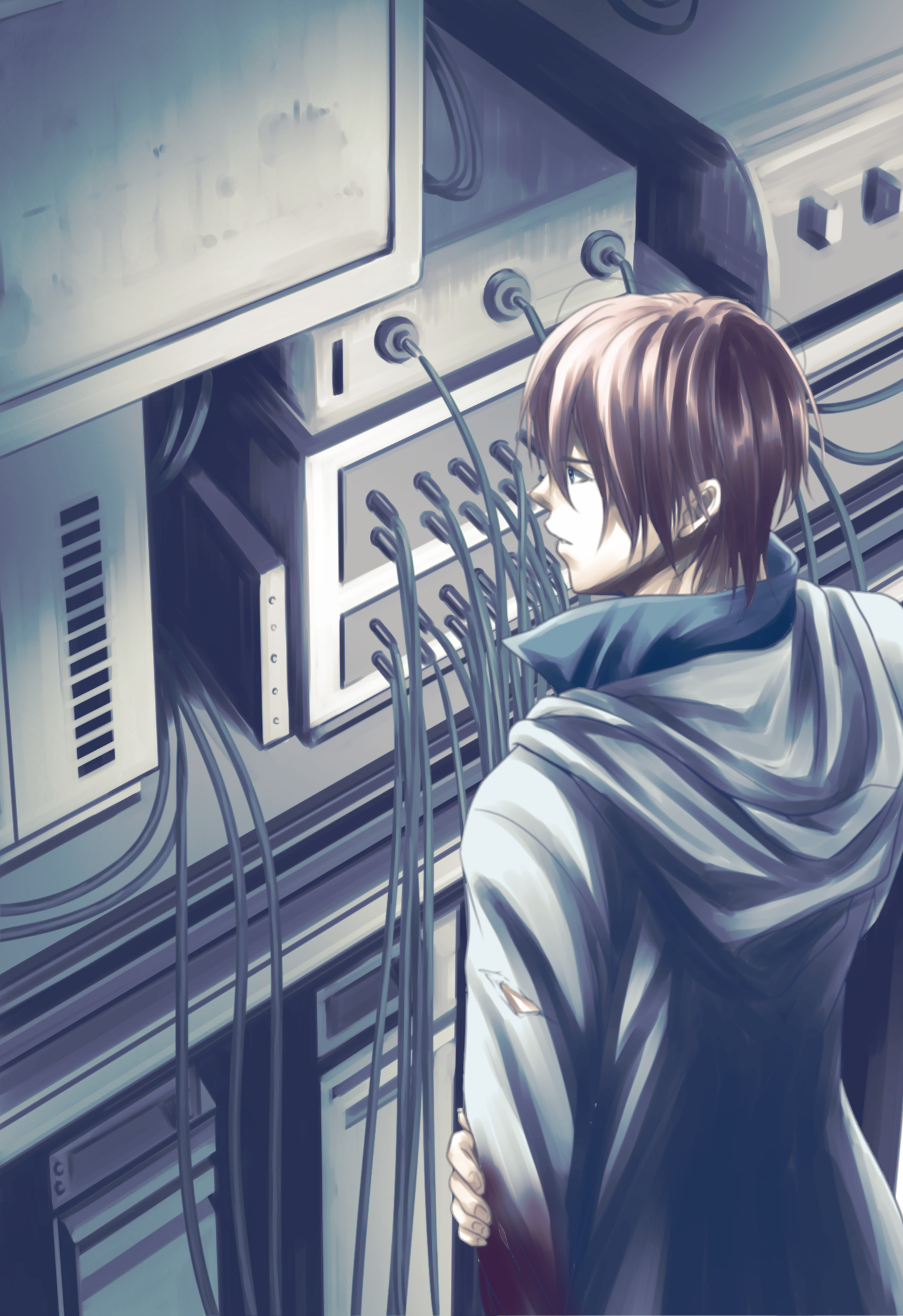 スイッチを押すとすぐにテンの言う通り淡く青白い光を放つ筒が機械の奥から出てくる。俺の肩から肘ぐらいまでの長さで、太さもそれぐらいだ。俺はそっとその物体を動く方の手で引き抜くと、胸に抱えた。