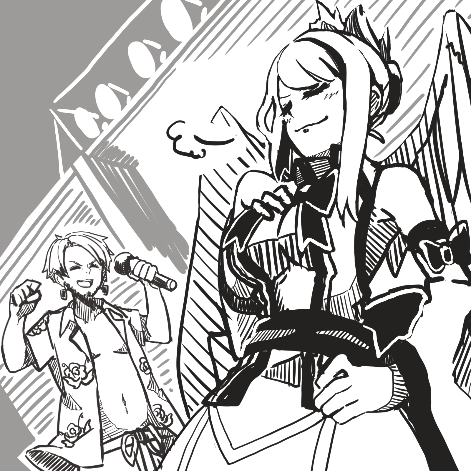 演奏の準備に取り組む中、何故かメテオラがアグニスのマイクをひったくった。