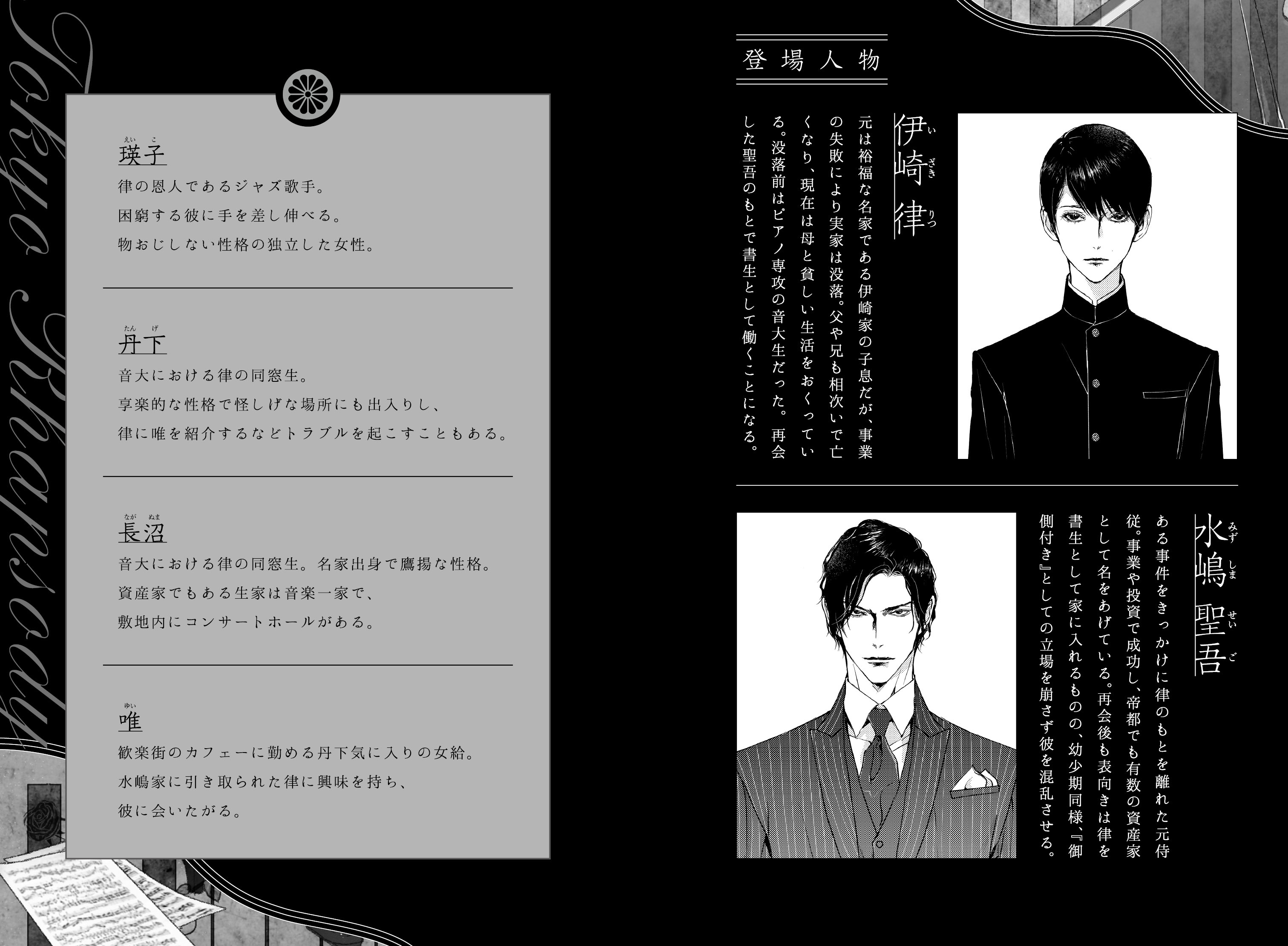 本来ならば、こんな場末のカフェーの客ではないのに、何がそんなに気に入ったのか、律のピアノが目当てで通っていると、常連客や給仕の女性達にも吹聴している。