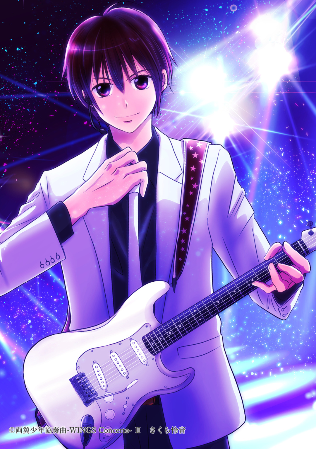 慣れた手つきで白のストラトキャスターを肩にかけ、きちんと絞められたネクタイを少し緩めて着崩しながら、優等生御曹司の相羽勝行はJロックバンド「WINGS」のボーカリスト・カツユキの顔へと変わっていく。