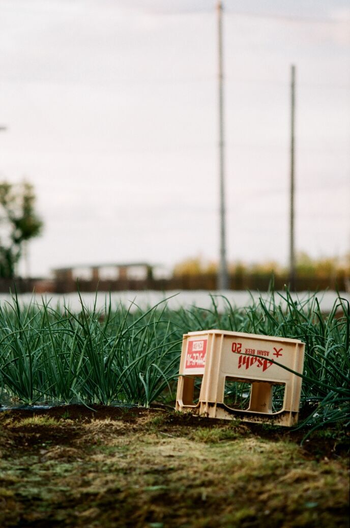 空 土 畝に農作物 草花 電柱 ビニールハウス