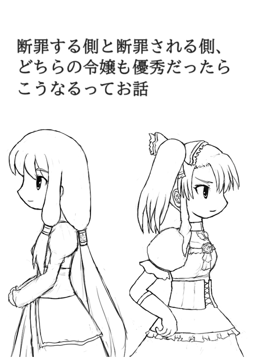 王子の婚約者候補であるユーフィリア、リズベットの二人は共に才女であり、優劣つけがたい存在であった。二人にとってお互いは同じ高みを目指す同士であった。王妃への道を知るが故、相手もどれほど努力しているか知っている。敬意こそ持ちはすれ、敵意はなかった。お互いの立場がある故、それを表に出す事はしなかったが。
