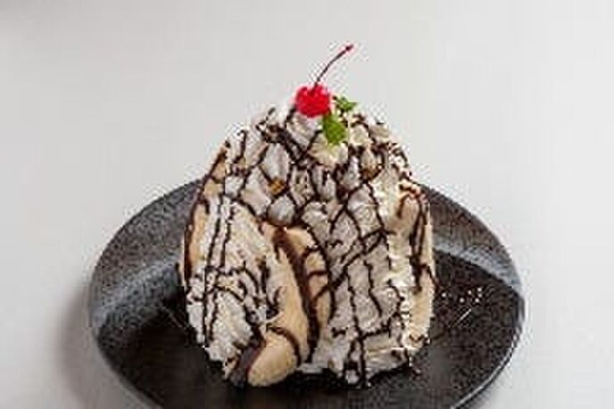 ご飯300グラム、ロースカツ1枚に豆腐一丁を使った珍メニュー。サクサクのカツにピリ辛麻婆豆腐をかけたロマン料理。わたしはまだ挑戦していない。ご飯よりもデザートが食べたくて、最初からチョコバナナマウンテンを頼んでしまう。