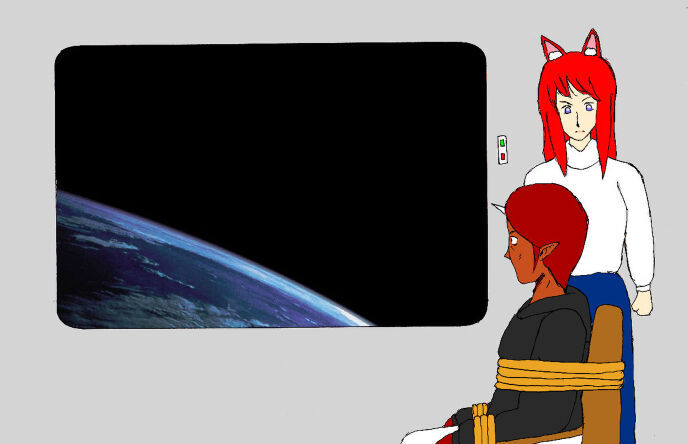 壁の一部が窓の様に外の様子を映し出す。そこには暗い夜空と青く光る球体の一部が映されていた。