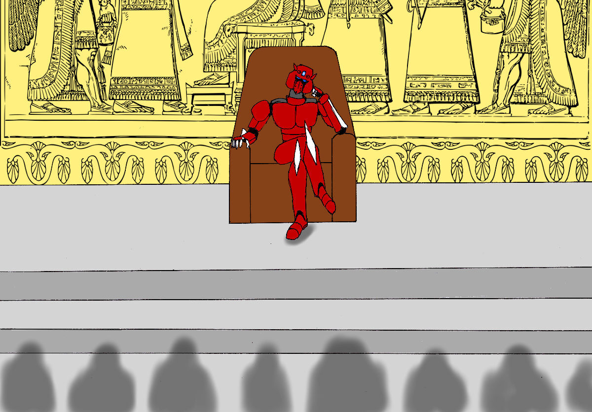 かつて人族の王が座っていた玉座に赤黒いロボットが腰を下ろしていた。