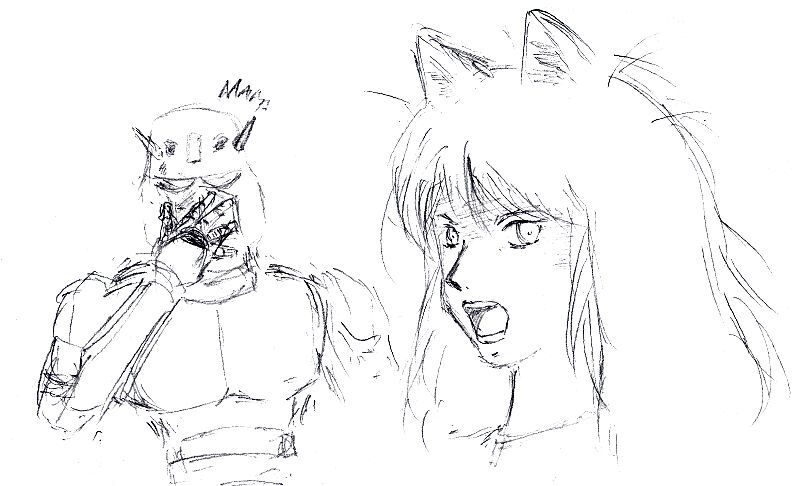 グリゼルダとギャガンが誰もいない健太郎の後ろに視線を送る。